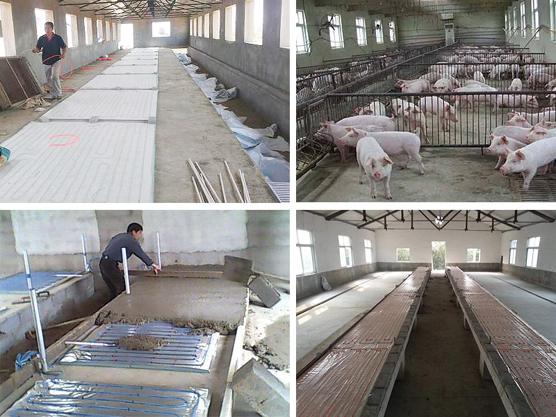 電地暖將(jiang)發(fa)熱電纜(lan)采暖應用(yong)于(yu)豬(zhu)舍供暖,這大(da)大(da)提(ti)升了(le)豬(zhu)舍的溫(wen)度,保證了(le)冬季養(yang)豬(zhu)低(di)產的問題。當豬(zhu)舍氣溫(wen)下降時,該系(xi)統會通過發(fa)熱電纜(lan)自動(dong)給溫(wen),豬(zhu)舍溫(wen)度達(da)不到23℃~32℃時,溫度監控系統便會智能開啟系統。發熱電纜通電發熱后,均勻發熱輻射讓豬舍溫度升高至理想溫度范圍內。