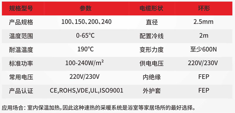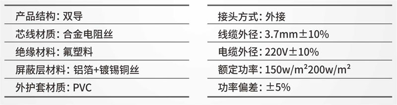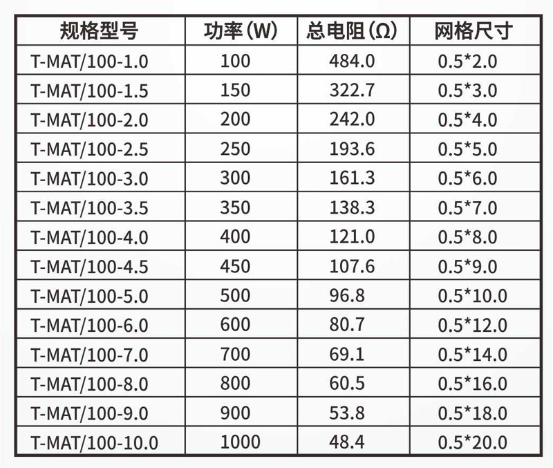 常(chang)用(yong)規格為100W/m2、150W/m2、200W/m2、240W/m2其它規格可以定制;