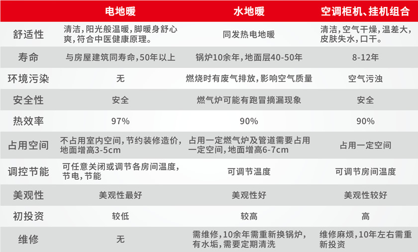 對于(yu)一(yi)些家庭(ting)來說(shuo)(shuo)在使用(yong)水(shui)(shui)暖(nuan)(nuan)(nuan)的(de)(de)(de)(de)過程中,順帶便(bian)可以供應生活(huo)熱水(shui)(shui)可以稱得(de)上是一(yi)舉兩得(de)。但事實上,水(shui)(shui)暖(nuan)(nuan)(nuan)對于(yu)家中水(shui)(shui)質的(de)(de)(de)(de)要(yao)求比較高,根據中國(guo)的(de)(de)(de)(de)水(shui)(shui)質情況(kuang)表現,通(tong)常在安裝(zhuang)(zhuang)水(shui)(shui)暖(nuan)(nuan)(nuan)的(de)(de)(de)(de)前期(qi)還需要(yao)安裝(zhuang)(zhuang)凈水(shui)(shui)裝(zhuang)(zhuang)置,這也相當(dang)于(yu)一(yi)筆不(bu)菲的(de)(de)(de)(de)費用(yong)。因(yin)為假設(she)不(bu)經過水(shui)(shui)質處(chu)理(li),水(shui)(shui)暖(nuan)(nuan)(nuan)的(de)(de)(de)(de)管道非常容易(yi)結垢,并(bing)且降低采暖(nuan)(nuan)(nuan)的(de)(de)(de)(de)效果,導致采暖(nuan)(nuan)(nuan)費用(yong)大幅上升。對于(yu)鍋爐分(fen)水(shui)(shui)器等重要(yao)設(she)備的(de)(de)(de)(de)壽命也構成致命的(de)(de)(de)(de)影響。業內還有三分(fen)設(she)備七分(fen)安裝(zhuang)(zhuang)的(de)(de)(de)(de)說(shuo)(shuo)法,對工人(ren)的(de)(de)(de)(de)安裝(zhuang)(zhuang)施工也有很高的(de)(de)(de)(de)要(yao)求。發熱電纜電地暖(nuan)(nuan)(nuan)主要(yao)源于(yu)歐美,它不(bu)僅(jin)僅(jin)加熱快,而且更加安全方(fang)便(bian),完全可以做(zuo)到分(fen)時(shi)分(fen)區精(jing)確(que)控(kong)制。